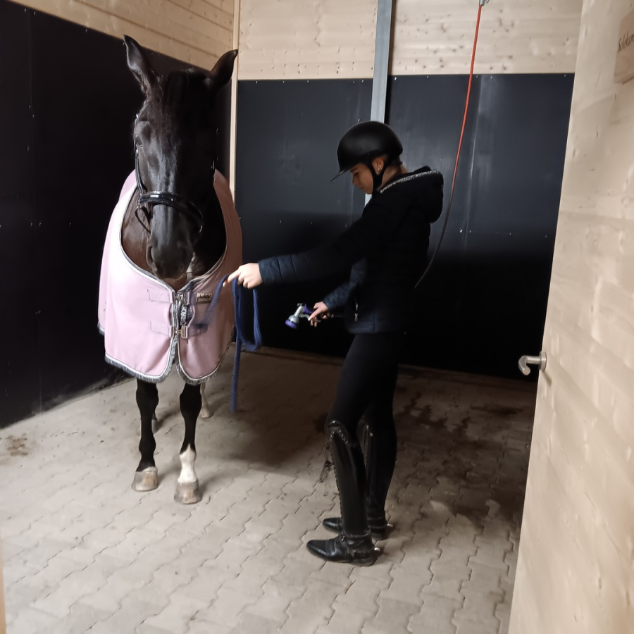 Ein Waschraum, der zur Abkühlung im Sommer sorgt und auch die Pferdewäsche im Winter möglich macht, gibt es im Hauptstall.